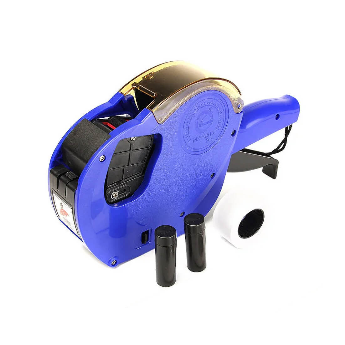 Этикет-пистолет MX-2612 быстро печатает липкие этикетки и наклеивает их на упаковку товара. Он служит для маркировки пищи, которая продается на развес. Эта модель применяется в розничных магазинах, в том числе в сетевых гипермаркетах и супермаркетах. Описание конструкции Корпус этикет-пистолета сделан из надежного пластика. Доступны два варианта дизайна корпуса: синий или красный. Благодаря эргономичной форме, модель хорошо ложится в руку. Для замены красящего ролика предусмотрен специальный механизм. Установка или замена осуществляется за несколько секунд. Главные характеристики модели: Тип механизма: однострочный. Символов в строке: 9. Размер этикетки: 26*12 мм. Прибор печатает цифры, буквы, разделительные знаки, денежные символы. В итоге получается этикетка с артикулом, ценой товара, дата продажи, номером отдела. Она плотно приклеивается к упаковке. Устройство работает с лентами с волнистыми краями шириной 26 мм. Предусмотрена вертикальная регулировка высоты печатной строки. Начало работы Для начала печати достаточно легкого нажатия на кнопку. Перед активацией нового пистолета требуется 20-30 раз нажать на ручку-рычаг, чтобы чернила поступили в печатающий механизм. Благодаря продуманной конструкции, сменный ролик нельзя установить неправильно.